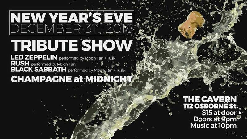 Moon Tan and TUSK are proud to present a tribute New Year's night at The Cavern, featuring three different sets, legendary Led Zeppelin, Rush, Black Sabbath. Ready to rock'n'roll? Moon Tan and Tusk perform.
