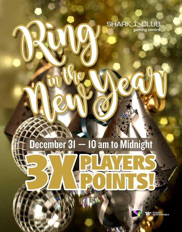 Join Shark Club Gaming Centre for 3X Player Points as they ring in the New Year on December 31!