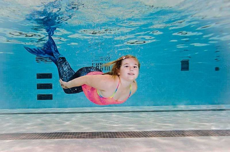 Your child has a great opportunity to experience and enjoy swimming with a magical mermaid tail! After learning about mermaid tail safety and perfecting their kick with a monofin, classes include monofin and tail rental; however, sizes and colours are limited.
