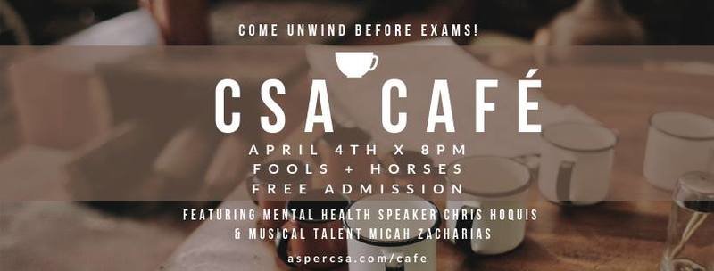 Come unwind before exams with our very last event of the semester before exam season begins! Mental health advocate and speaker Chris Hoquis will be sharing his story and offering advice to all attendees in an open discussion following his talk. Musical performer Micah Zacharias will be sharing his talent with us throughout the evening. The event is FREE ADMISSION and anyone is welcome to attend! Appetizers will be provided, and drinks and cocktails will be available for purchase.