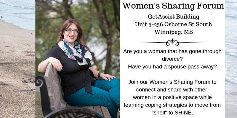 Women's Sharing Forum, led by Angie (Smith) Sinclair of Shell 2 Shine, is a positive space to talk about your experience from a relationship and learn from others who have been in a similar space. Restricted to women and limited space to ensure a more intimate and comfortable atmosphere.