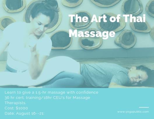 Ajan Jenny Rae, is visiting form Thailand this summer on her Canadian Tour. Jenny Rae has studied at Thailand’s most esteemed Medical Societies. She’s been living in Thailand for the last ten years, developing a healing retreat centre and continuing her studies and teaching Thai Massage. Jenny is a “Master” in her own right and we are so fortunate to have the opportunity to learn from someone of this calibre. Join Monica Angelatos, and all of us at Yoga Public in welcoming Jenny Rae to Winnipeg this August, for a 6 day Thai Massage Training, where you’ll gain the confidence required to give a 1.5 hour Thai Massage with great ease.