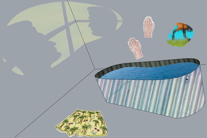 Combining hand-drawn animation and collage with kinetic surfaces and projection mapping, the work explores themes of alienation and wonder through the lens of an automaton’s shadow play from a bathtub. This playfully absurd sketch began during a two-month Winter residency in Hafnarborg, Iceland.