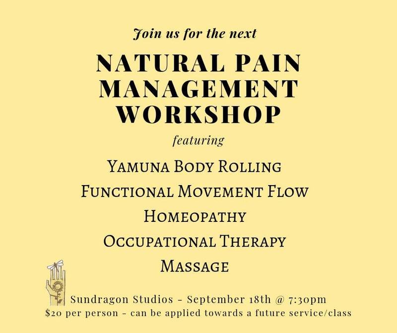 Looking for alternative approaches to dealing with and managing chronic pain? Our info night is featuring Amy with Body Rolling, Paola with Functional Movement Flow, Paula with Homeopathy, Mitchell with Occupational Therapy and Jeanine with Massage Therapy.