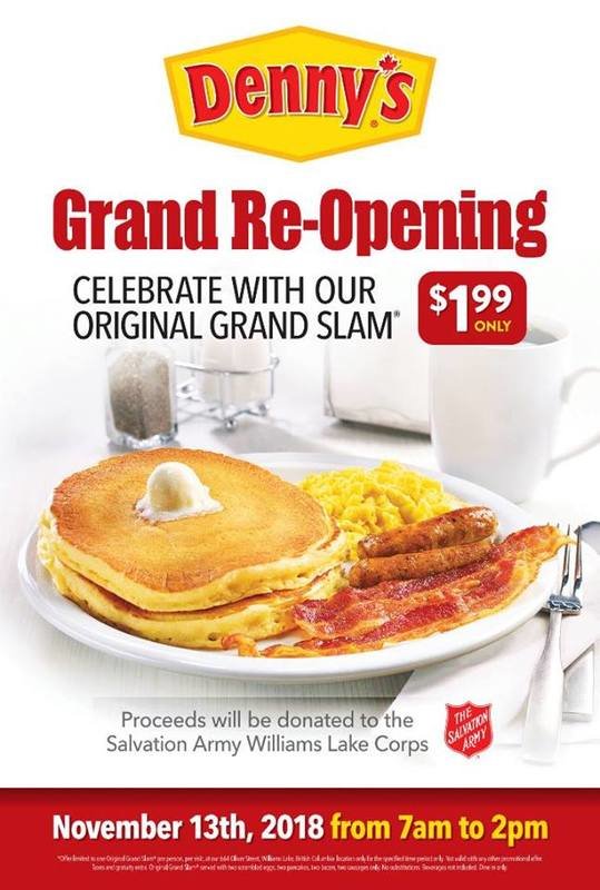 A celebration of the re-opening of the Williams Lake location with $1.99 Original Grand Slams.