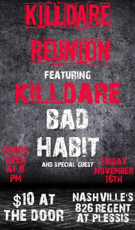 Killdare reunion featuring Bad Habit, Kildare and special guests are pleased to perform at Nashville's Winnipeg the 16th of Noveber!