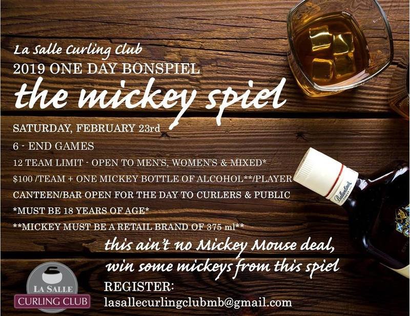 Join the full day of curling and wine Mickeys at the La Salle Curling Club! Entry Fee is $100 per team plus 4 Mickey sized bottles of alcohol. Alcohol MUST be a retail brand and 375 ml in size.