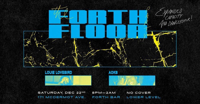 Holidazed DJ's AOKS and Louie Lovebird will be keeping the party bumping for all the friends! Forth Bar has become larger with the newly renovated lounge extension, adding a dance floor. Cocktail specials, snacks, friends and jams all night long.