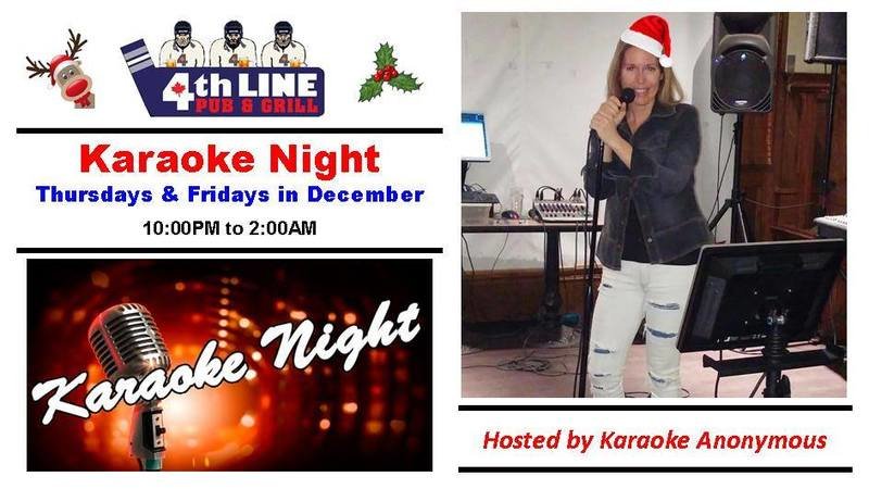 Join the 4th Line PUB & GRILL evening in December for Karaoke Night hosted by Karaoke Anonymous!